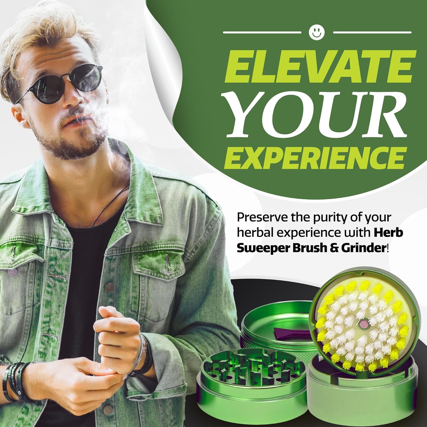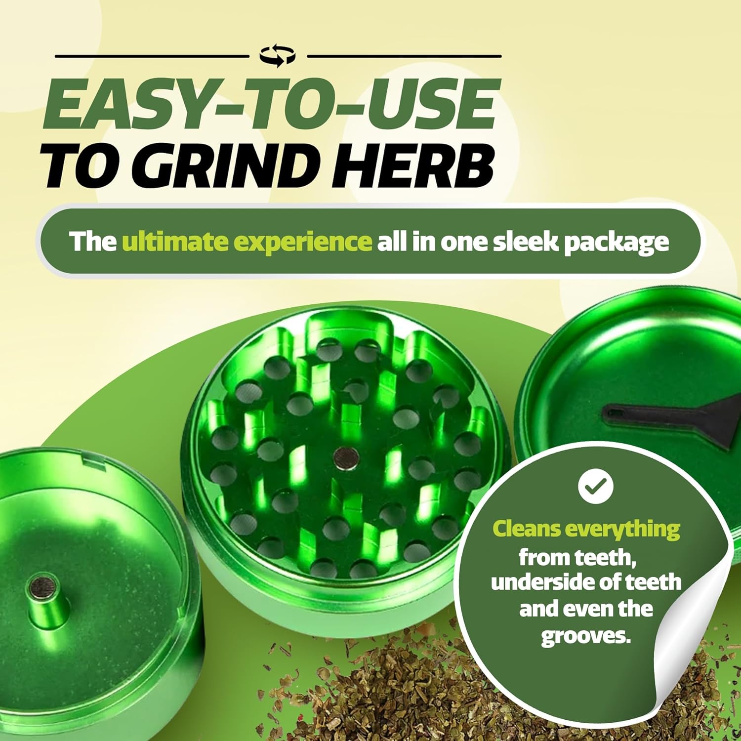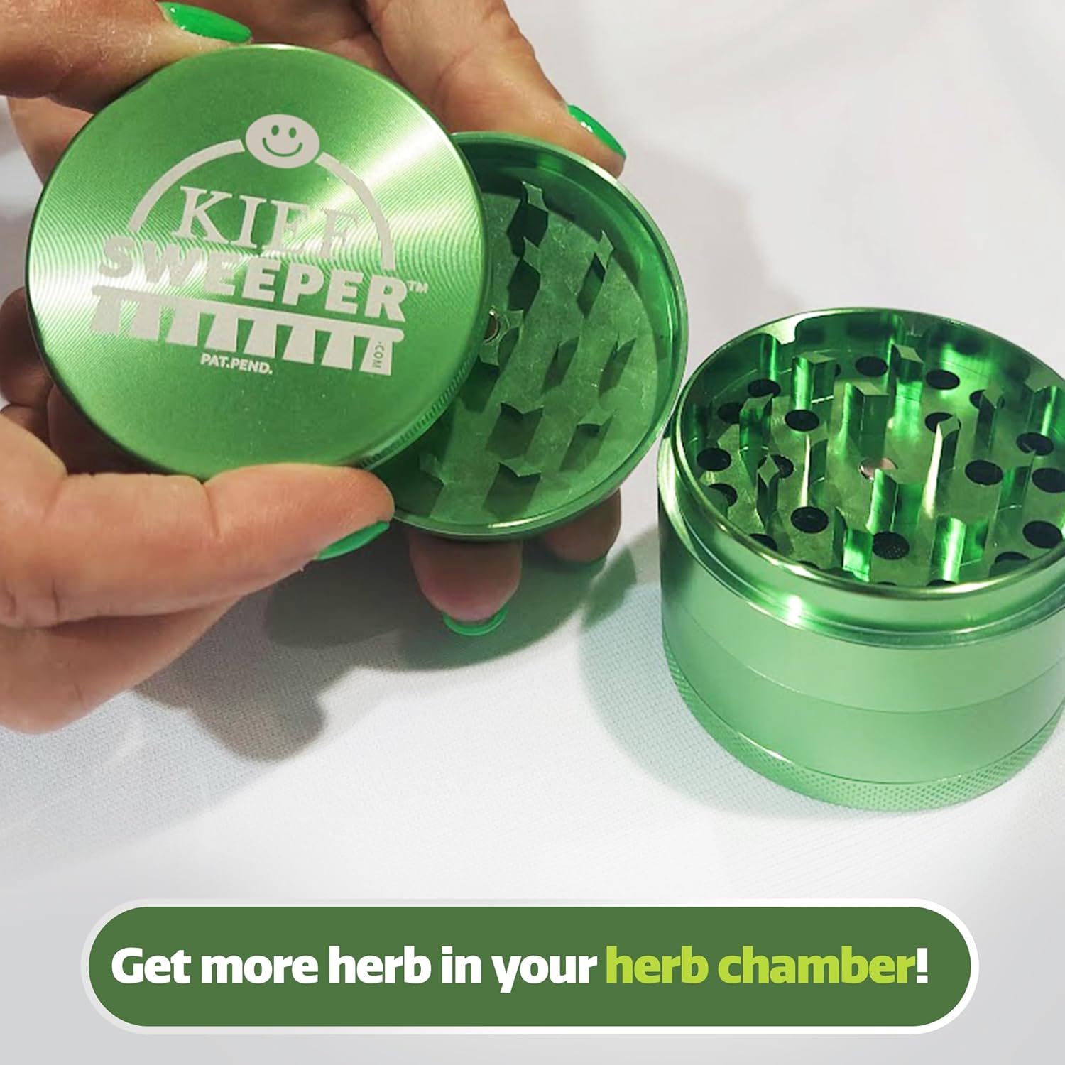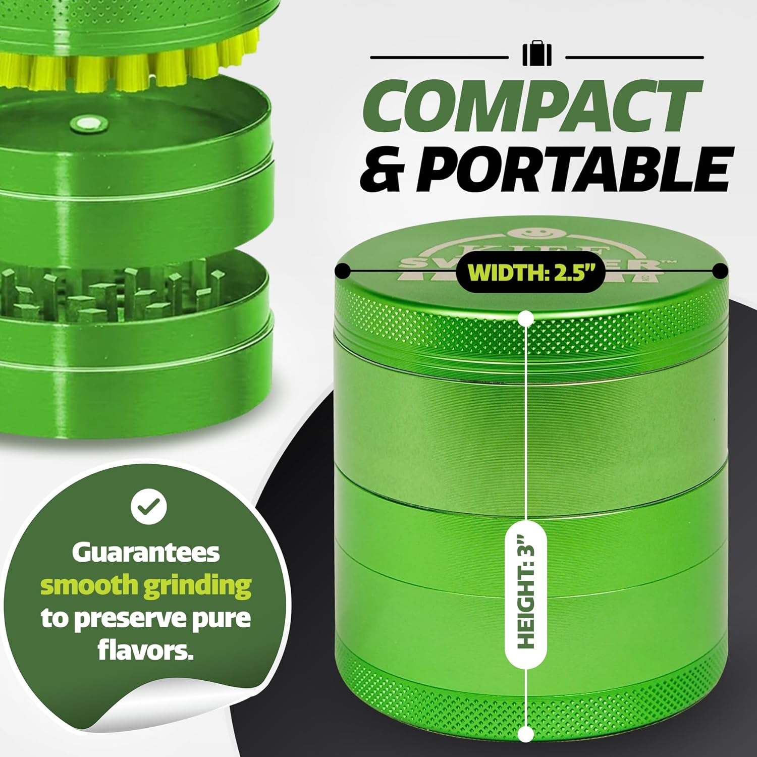 The Kief Sweeper Brush Plus Grinder combines a 5-piece brush with a premium aluminum alloy grinder. Featuring the Grip-Tight Locking System™, it ensures smooth, chemical-free grinding and easy cleanup—all in one sleek package!